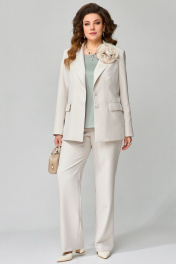 Блуза, брюки, брошь, жакет Fita 1462 серо-бежевый