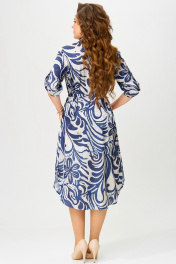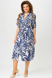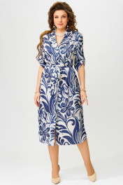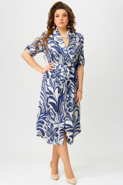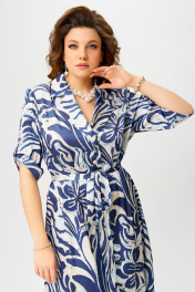 Платье-халат "Франа" без подкладки прямого силуэта с поясом. Застежка однобортная на петли и пуговицы. Воротник отложной с лацканами пиджачного типа. По груди полочки выточка и потайной карман в боковых швах. Рукав втачной 7/8. Низ рукава обработан швом в подгибку с закрытым срезом. По рукаву пата с застежкой на петлю и пуговицу. Низ платья обработан швом в подгибку с открытым срезом и по бокам разрезы овальной формы. Пояс входит в комплект платья.