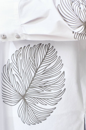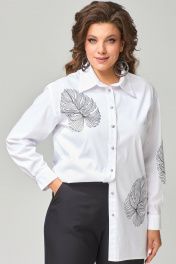 Блуза "Радаси" из хлопокой ткани, прямого силуэта. Рукав втачной, длина рукава не регулируется, манжет на застежку, на петли пуговицы. Воротник рубашечного типа со стойкой, край борта обработан отрезной планкой.