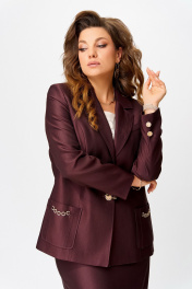 Комплект "Яница" — воплощение утончённой элегантности В каждом изгибе ткани, в каждом отблеске золотой фурнитуры — дыхание изысканности и женственности. Комплект "Яница" словно создан для тех, кто умеет говорить без слов, чья грация — это уверенность, а стиль — это внутренний свет. Полуприлегающий силуэт жакета на подкладке мягко очерчивает фигуру, будто повторяя её движения. Ткань "Лумина" с вискозой в составе играет на свету благородным блеском, придавая образу особую глубину. Однобортная застёжка на петли и пуговицы — классика, которая не теряет актуальности. Воротник и лацканы пиджачного типа добавляют строгости, а рельефы и накладные карманы с декоративной цепочкой — нотку изящного шика. Карман-обманка на левой полочке — как лёгкий флирт с традицией, а две декоративные пуговицы на рукавах — как драгоценные акценты, завершённые с ювелирной точностью. Средний шов по спинке — линия, соединяющая форму и содержание. Зауженная к низу юбка, подчёркивает силуэт, не сковывая движения. Притачной пояс с эластичными вставками по бокам — забота о комфорте, скрытая за элегантной формой. Шлица по спинке и потайная застёжка — детали, которые говорят о мастерстве. А обработанный низ с открытым срезом — как лёгкий штрих художника, оставленный в порыве вдохновения. Образ "Яница" — это не просто наряд, это настроение. Это вечер в театре, деловая встреча или торжественный приём, где вы — центр внимания. Золотая фурнитура добавляет блеска, но не кричит — она шепчет о вкусе, о статусе, о внутреннем достоинстве.