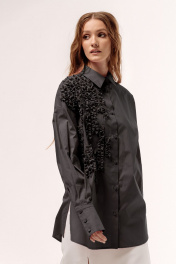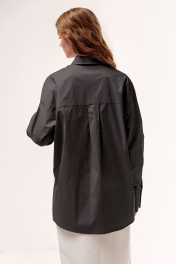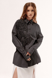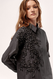 Оверсайз рубашка с рюшами и кокеткой из текстиля FLAIM 1045.02 черный
