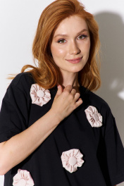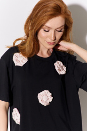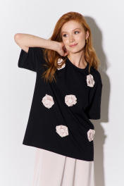 Майка с декоративными объемными цветами свободного кроя FLAIM 1105.01 черный-бежевый