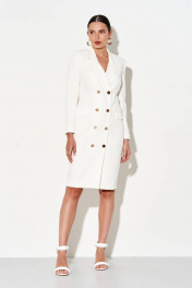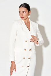 Двубортное классическое платье полуприлегающего силуэта на подкладке. Рукав втачной. По переду платья прорезные карманы.