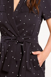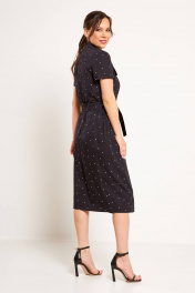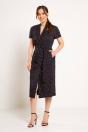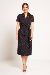 Нарядно-повседневное платье прилегающего силуэта с двубортной застежкой на петли и пуговицы. Рельефы по переду изделия для лучшего прилегания.Прорезной карман с листочкой.Рукав реглан-кокетка с втачным декоративным клапаном. Воротник пиджачного типа, спинка со средним швом. Платье со сьемным поясом.