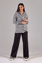 Рубашка прямого силуэта. Рукава втачные одношовные на манжетах. Воротник отложной с отрезной стойкой. Карманы функциональные накладные. Застежка на петли и пуговицы. Длина изделия: 70 (размеры 44-48), 71 (размеры 50-54) Длина рукава: ширина плеча+длина рукава 72 (все размеры)