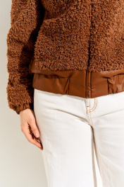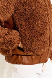 Женская демисезонная меховая куртка полуприлегающего силуэта на подкладке выполнена из двух видов ткани: основной меховой ткани под "каракуль" и ткани-компаньона - Эко-кожи. Рукава изделия имеют форму реглан с манжетой на резинке по низу; на левом рукаве имитация кармана с клапаном; воротник-стойка; по низу отрезная планка на резинке; застежка на молнию; в боковых швах функциональные карманы. Куртка полностью соотвествует заявленному размеру. Пожалуйста, пользуйтесь таблицей измерений готового изделия. Уход за изделиями из каракуля: - cтирать в машинке при 30°C (деликатный режим) или вручную, не выкручивая сушить на плечиках вдали от источников тепла; - важно регулярно расчесывать ворс, хранить в чехле и избегать использования сумок через плечо, чтобы не образовались залысины; - рекомендована химчистка.
