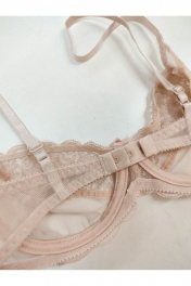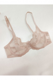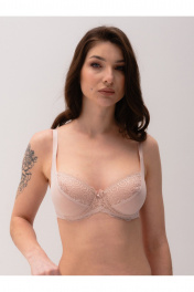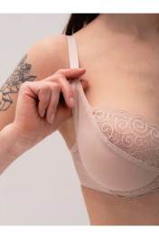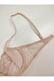 Бюстгальтер с мягкой чашкой на каркасах. Выполнен из тонкого сетчатого полотна, верх чашки и ластовица из цветочного кружева.Чашка без уплотнения, с вертикальной выточкой. Отличная посадка и поддержка груди в её естественном положении.Классическая прямоугольная постановка бретелей.Бретели из эластичной ленты с регулировкой по длине. Застёжка сзади на крючки и петли, 1*3 крючка. Декоративный атласный бантик на ластовице.