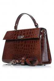 Сумка на одно отделение, закрывающееся клапаном на замок-клипсу, с одной короткой ручкой длиной 300+10 мм, с двумя боковыми держателями, со съемной регулирующейся ручкой-ремнем максимальной длины 1210+-10 мм. Цвет фурнитуры - никель. Размеры: