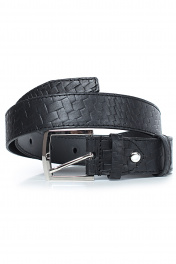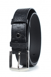 Ремень в обрезку, с обработкой краев, с обстрочкой ремня по периметру, с пряжкой и шлевкой на запряжнике, с одной передвижной шлевкой. Цвет фурнитуры - никель. Размеры: 1150x3x35