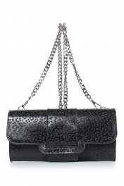 Клатч на одно отделение, закрывающееся клапаном на замок-магнитку, со съемной ручкой из цепи длиной 930+-10мм. Цвет фурнитуры-никель. Размеры: