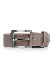 Ремень в обрезку, с обработкой краев, без обстрочки ремня по периметру, с пряжкой и шлевкой на запряжнике, с одной передвижной шлевкой,с тиснением на ремне. Цвет фурнитуры - никель. Размеры: 1150x3x35