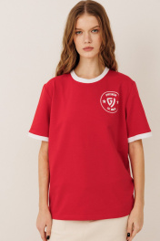 Та самая футболка, которую не хочется снимать. Мы создали идеальный классический крой: в меру свободный, чтобы не стеснять движений, и достаточно аккуратный, чтобы выглядеть уместно даже в деловом образе. Футболка: классический крой умеренный объем стильный принт контрастная горловина и манжеты из кашкорсе Длина футболки по спинке от горловины: 61-63 см Длина рукава: 23-25 см Полуобхват по груди: 42р - 48 см, 44р - 50 см, 46р - 52 см, 48р - 54 см, 50р - 56 см, 52р - 58 см