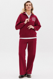 Женский яркий, повседневный костюм, состоящий из оверсайз свитшота с контрастной вышивкой и брюк со стрелками. Это находка для тех, кто ценит свободу, стиль и не хочет отказывать себе в комфорте 24/7. Свитшот: дизайнерская вышивка свободный силуэт короткая застежка - молния манжеты рукавов, стойка и низ свитшота из ткани кашкорсе Брюки: прямой силуэт удобные карманы стрелки по переду зафиксированы строчкой пояс из ткани кашкорсе с резинкой и шнуром Длина свитшота по спинке 64-67 см. Длина рукава свитшота с плечом: 69-71 см для роста 164-170 см, 72-74 см для роста 170-176 см. Полуобхват груди свитшота: 42 р - 64 см, 44 р - 66 см, 46 р - 68 см, 48 р - 70 см, 50 р - 72 см, 52 р - 74 см. Длина брюк по боковому шву с поясом: 102-104 см для роста 164-170 см, 105-107 см для роста 170-176 см. Полуобхват бедер брюк: 42 р - 48 см, 44 р - 50 см, 46 р. - 52 см, 48 р. - 54 см, 50 р. - 56 см, 52 р. - 58 см.