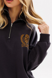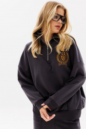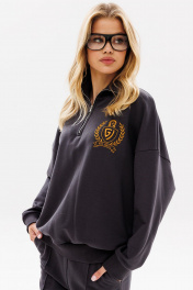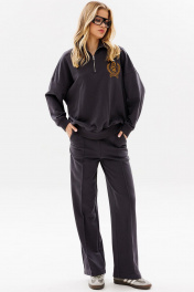 Женский яркий, повседневный костюм, состоящий из оверсайз свитшота с контрастной вышивкой и брюк со стрелками. Это находка для тех, кто ценит свободу, стиль и не хочет отказывать себе в комфорте 24/7. Свитшот: дизайнерская вышивка свободный силуэт короткая застежка - молния манжеты рукавов, стойка и низ свитшота из ткани кашкорсе Брюки: прямой силуэт удобные карманы стрелки по переду зафиксированы строчкой пояс из ткани кашкорсе с резинкой и шнуром Длина свитшота по спинке 64-67 см. Длина рукава свитшота с плечом: 69-71 см для роста 164-170 см, 72-74 см для роста 170-176 см. Полуобхват груди свитшота: 42 р - 64 см, 44 р - 66 см, 46 р - 68 см, 48 р - 70 см, 50 р - 72 см, 52 р - 74 см. Длина брюк по боковому шву с поясом: 102-104 см для роста 164-170 см, 105-107 см для роста 170-176 см. Полуобхват бедер брюк: 42 р - 48 см, 44 р - 50 см, 46 р. - 52 см, 48 р. - 54 см, 50 р. - 56 см, 52 р. - 58 см.