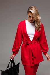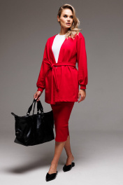 Костюм Gowear из футера в стиле smart casual поможет создать в меру строгий и одновременно расслабленный образ. Костюм состоит из жакета и юбки из эластичной ткани кошкорсе. Жакет прямого силуэт, с v-образным вырезом горловины, без застежки, с отдельным поясом. На левом переде вышивка-логотип в цвет ткани. Рукав свободный, со складками, присобран на манжету. Жакет без подкладки. Юбка прямая, облегающая фигуру с разрезом на спинке. Пояс цельнокроенный с резинкой внутри. Длина жакета по спинке 76-78 см. Длина рукава (спущенное плечо 4 см): 52-54 см для роста 164-170 см, 54-56 см для роста 170-176 см. Полуобхват груди жакета: 42 р - 53 см, 44 р - 55 см, 46 р. - 57 см, 48 р. - 59 см, 50 р. - 61 см, 52 р - 63 см. Длина юбки: 80 см. Полуобхват бедер юбки: 42 р - 33 см, 44 р -35 см, 46 р. - 37 см, 48 р. - 39 см, 50 р. - 41 см, 52 р - 43 см.