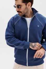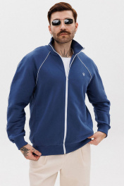 Синий зип-джемпер из трикотажа с вышивкой и контрастным кантом GO M4082/20-01. 176-182