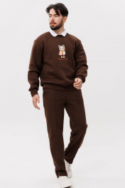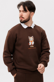 Коричневый свитшот с вышивкой из трикотажа и классическим силуэтом GO m4091/23-03.176-182