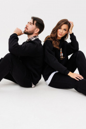 Чёрный свитшот на каждый день с цветной вышивкой и классическим кройлом GO m4091/40-02.176-182