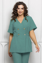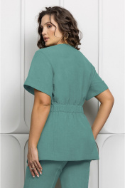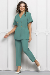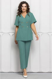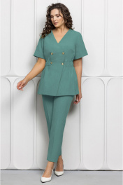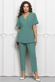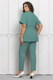 Дизайнерский брючный костюм с резинкой и скрытым поясом Gold Style 2614 изумрудный