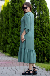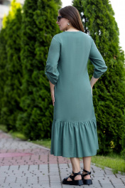 Зеленое летнее макси платье из льна с сборкой и карманами Gold Style 2657 изумруд