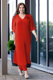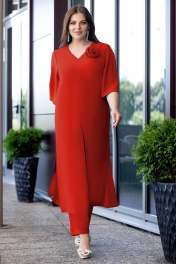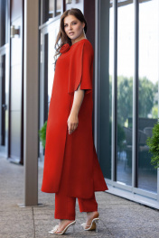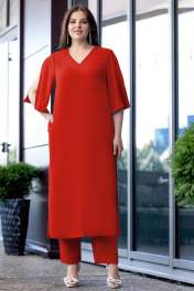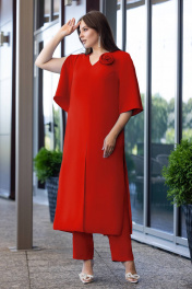 Стильный комплект из туники и брюк из струящейся ткани Gold Style 2660 красный