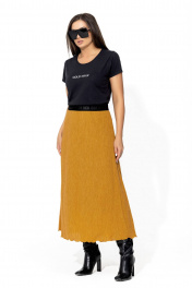 Юбка трапеция макси с поясом из эластичной жатки для повседневных образов Gold Style 2667 горчица