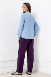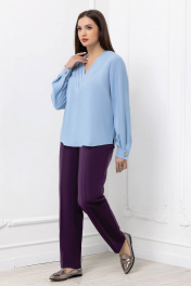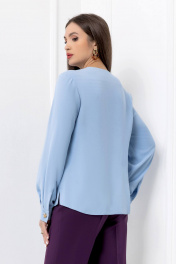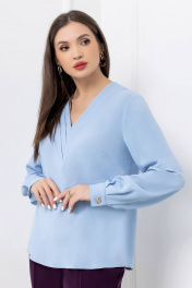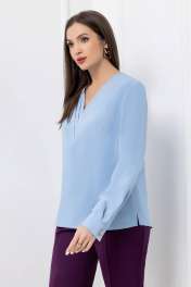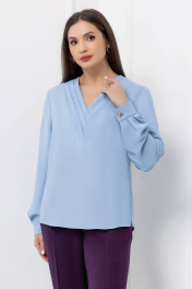 Голубая деловая блузка из текстиля с плиссированной вставкой Gold Style 2689