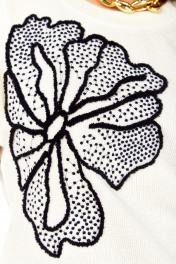 Этот модный, теплый, мягкий трикотажный комплект, подарит Вам тепло и уют. Удобный джемпер прямого силуэта со спущенным плечом. Перед без нагрудных вытачек, с правой стороны переда расположена дизайнерская вышивка в виде цветка. Спинка без среднего шва. Горловина обработана бейкой. Рукава ¾. По низу изделия пояс. Юбка на поясе с резинкой, по переду пояса планка, заднее полотно юбки без среднего шва. Юбка без разрезов, без подкладки.