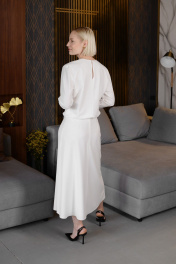 Блуза базовая. Блуза выполнена из струящейся немнущейся ткани ткани средней плотности, что будет комфортно как в повседневной носке, так и в качестве наряда на вечер. Блуза выполнена на подкладке. Для создания цельного образа рекомендуем сочетать блузу с юбкой арт.U034с из аналогичной ткани. Модель на фото размера 44, рост 170 см, размер блузы 44 – Деликатная ручная стирка при температуре воды до 30°C; – Гладить при температуре утюга до 110°C; – Не отбеливать; – Барабанная сушка запрещена. Обхват груди: XS – 94 см, S – 98 см, M – 102 см, L – 106 см. Обхват талии: XS – 82 см, S – 86 см, M – 90 см, L – 94 см. Длина рукава – 63-64 см. Длина изделия по среднему шву спинки – 56-57 см.