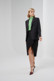 Однобортный жакет с акцентом на талии. Слегка расширенные плечи и полуприталенный крой создают сочетание расслабленности и женственности в одном образе. Застежка на две пуговицы. Прекрасным дополнением к жакету будут брюки арт.В004 из коллекции HELEN BIRCH , к костюму можно заказать жилет из аналогичной ткани. Жакет выполнен из костюмной ткани с вискозой и эластаном. Модель на фото размера XS (42), рост 170 см, размер жакета S (44). - Не стирать; - Не отбеливать; - Сухая чистка (химчистка); Длина изделия по среднему шву спинки без учета воротника – 66-68 см. Длина рукава – 59-61 см. Обхват в области бицепса: XXS -31 см, XS – 32 см, S – 33 см, M – 34 см, L – 35 см, XL – 36 см, XXL – 37 см. Обхват груди: XXS -86 см, XS – 90 см, S – 94 см, M – 98 см, L – 102 см, XL – 106 см, XXL – 110 см. Обхват талии: XXS – 84 см, XS – 88 см, S – 92 см, M – 96 см, L – 100 см, XL – 104 см, XXL – 108 см. Обхват бедер: XXS – 96 см, XS – 100 см, S – 104 см, M – 108 см, L – 112 см, XL – 116 см, XXL – 120 см.