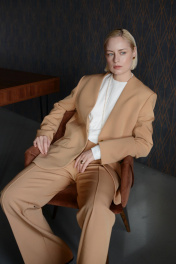Длинный жакет с прорезными карманами и застежкой на пуговицы HELEN BIRCH J037 кэмел