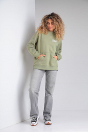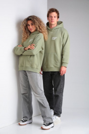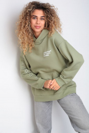 Классное oversize худи из футера с принтом lovers HIT 0208/1 оливковый