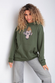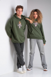 Худи на каждый день из трикотажа и хлопка, зеленое, oversize HIT 0216 хаки