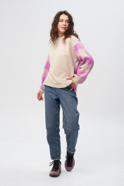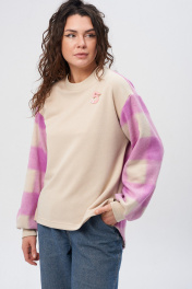 Джемпер и юбка из трикотажа и экокожи с вышивкой и карманами HIT 2014/1 бежевый