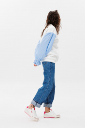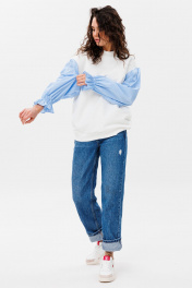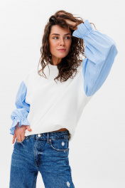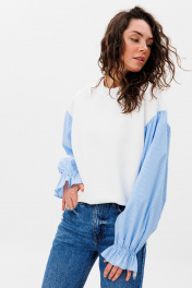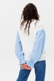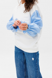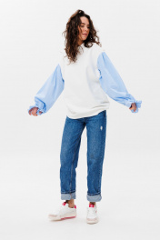 Демисезонный свободный джемпер из футера и блузочной ткани HIT 2019 белый,голубой