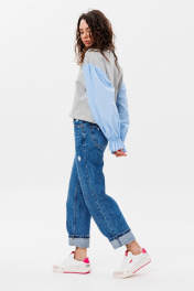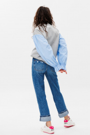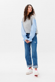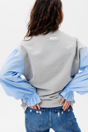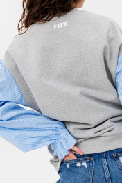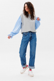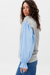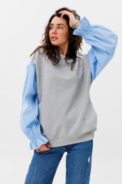 Демисезонный свободный джемпер из трикотажа и текстиля HIT 2019 серый,голубой