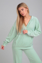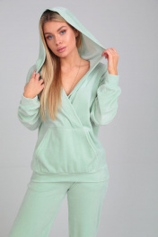 Комфортный женский костюм из бархата с капюшоном и брюками HIT 3097 мята
