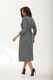 М-105 сафари женское. Платье женское прямого силуэта. Линия талии акцентирована кулиской с резинкой шириной 5 см. Платье выполнено из плательной ткани. Перед платья оформлен нагрудной кокеткой с вытачкой из бокового шва и прямоугольным накладным карманом. Спинка цельнокроёная с кокеткой и настрочной декоративной нашивкой по центру спинки. Вырез горловины круглый, застёжка центральная на тесьму-молнию длиной 80 см. Покрой рукава «летучая мышь», рукав отрезной, одношовный, линия плеча спущена на 13 см. Низ рукава на резинке шириной 2,5 см.