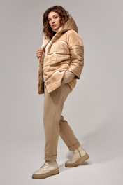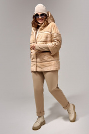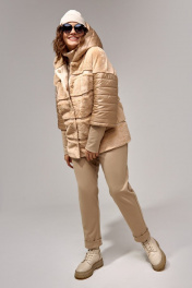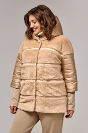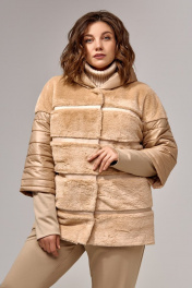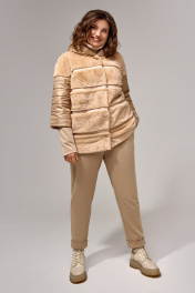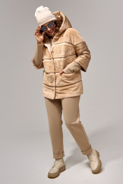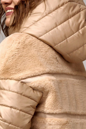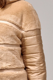 Куртка женская прямого силуэта из искусственного меха со вставками из эко-кожи. Рукава выполнены из стеганой ткани на трикотажной манжете, плечи спущенные, по переду карманы и застежка на потайные кнопки. Сезон деми.