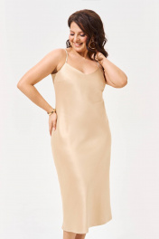 Женское шелковое платье-комбинация на регулируемых бретелях длины миди. Платье выполнено "по косой" из плотного, держащего форму шелк-сатина без подкладки. В бокой шов вшита потайная молния.