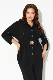 Женский костюм полуприлегающего силуэта, состоящий из рубашки и брюк, выполнен из мягкой костюмной ткани средней плотности. Рукава рубашки со спущенной линией плеча, внутренней патой и манжетой, что позволяет регулировать высоту рукава и представляет собой стильную деталь с изысканным акцентом; воротник рубашечный; по переду накладные клапаны - обманки. Застегивается на петли и пуговицы. Классические брюки прямого силуэта с функциональными карманами в боковых швах, пояс притачной с эластичной тесьмой по спинке для лучшего прилегания; застежка на молнию, петлю и пуговицу. В комплекте съёмный пояс - резинка из основной ткани с пряжкой. Костюм полностью соотвествует заявленному размеру. Пожалуйста, пользуйтесь таблицей замеров готового изделия . Уход за изделиями: - при стирке в стиральной машине выбрать бережный либо деликатный режим; - температура воды не выше 40 градусов.