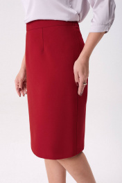 Классическая юбка-карандаш. Выполнена из костюмного полотна. Прямой силуэт. Высокая посадка на талии. Притачной пояс. Застежка в среднем шве спинки на потайную молнию и пуговицу на поясе. По спинке пояс частично с эластичной резинкой для комфортной посадки. Средний шов спинки заканчивается шлицей. Юбка на подкладке.