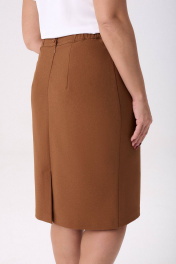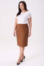 Классическая юбка-карандаш. Выполнена из костюмного полотна. Прямой силуэт. Высокая посадка на талии. Притачной пояс. Застежка в среднем шве спинки на потайную молнию и пуговицу на поясе. По спинке пояс частично с эластичной резинкой для комфортной посадки. Средний шов спинки заканчивается шлицей. Юбка на подкладке.