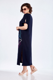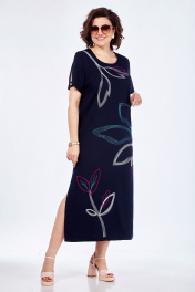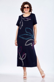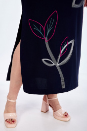 Платье женское прямого силуэта из плательной ткани. Горловина круглой формы. По переду нагрудные вытачки. На спинке средний шов. В боковых швах обработаны карманы, внизу разрезы. Рукава втачные, разрезные с фигурным вырезом. Платье декорировано дизайнерской вышивкой. Длина платье по спинке — 129 см, длина рукава — 24 см. р.50 — ПОГ 55 см, ПОБ 58 см, р.52 — ПОГ 57 см, ПОБ 60 см, р.54 — ПОГ 59 см, ПОБ 62 см, р.56 — ПОГ 61 см, ПОБ 64 см, р.58 — ПОГ 63 см, ПОБ 66 см, р.60 — ПОГ 65 см, ПОБ 68 см.