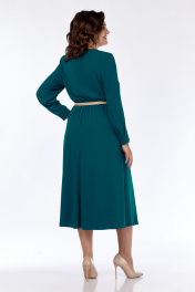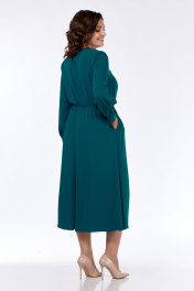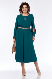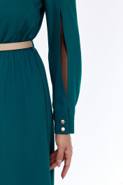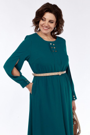 Платье женское, нарядное, А-силуэта, выполнено из плательной ткани. Горловина округлой формы обработана планкой. Платье отрезное по линии талии и собрано на эластичную тесьму. По центру лифа складка декорированная пуговицами. Верхняя часть спинки цельная. Юбка платья 4х-клинка. В боковых швах имеются карманы. Рукава втачные двухшовные по переднему шву разрез, на манжете с застежкой на две петли с пуговицами. Платье дополнено съемным ремнем. Обращаем Ваше внимание, что цвет на экране может отличаться от реального. Длина платья по спинке -125 см. Длина рукава — 62 см, длина плеча — 10 см. р.52 — ПОГ 56 см ПОБ 61 см, р.54 — ПОГ 58 см ПОБ 63 см, р.56 — ПОГ 60 см ПОБ 65 см.