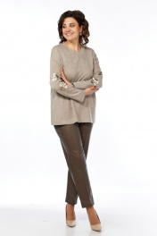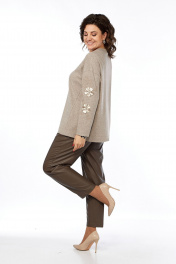 Комплект брюки и джемпер из трикотажа и экокожи для повседневного стиля Jurimex 3254
