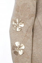 Комплект брючный, состоит из джемпера и брюк. Джемпер свободного силуэта, выполнен из трикотажного полотна. Горловина обработана планкой. Перед с центральным швом и боковыми рельефами, которые декоративно отстрочены. Рукава спущенные декорированы вышивкой с отлетными цветами. Брюки средней посадки, выполнены из экокожи. Пояс притачной на резинке. На передних деталях застрочены стрелки. В брюках обработаны боковые карманы. Обращаем Ваше внимание, что цвет на экране может отличаться от реального. Длина джемпера по спинке — 67 см, длина плеча +рукав — 69 см. р.50 — ПОГ 57 см ПОБ 59 см, р.52 — ПОГ 59 см ПОБ 61 см, р.54 — ПОГ 61 см ПОБ 63 см, р.56 — ПОГ 63 см ПОБ 65 см. Длина брюк по боковому шву — 100 см. р.50 — ПОТ 39 см ПОБ 55 см, р.52 — ПОТ 40 см ПОБ 57 см, р.54 — ПОТ 41 см ПОБ 59 см, р.56 — ПОТ 42 см ПОБ 61 см.