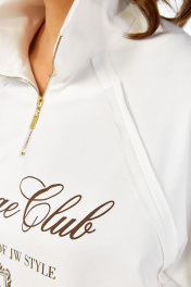 Комплект брючный двухпредметный, состоит из джемпера и брюк. Джемпер свободного силуэта изготовлен из хлопкового полотна, с воротником стойка на молнии. Перед и спинка в области бедер с декоративным подрезом. Рукава — реглан. Низ изделия,низ рукавов и швы втачивания рукавов выполнены необработанным срезом. Джемпер дополнен дизайнерской печатью. Брюки прямого силуэта с притачным поясом на эластичной тесьме. В передних деталях брюк обработаны боковые карманы и застрочены канты. Обращаем Ваше внимание, что цвет на экране может отличаться от реального. Состав: брюки: вискоза — 64%, нейлон — 32%, спандекс — 4%. Джемпер: хлопок — 95%, эластан — 5%. Описание Длина джемпера по спинке -68 см, длина плеча — 71 см. р.52 — ПОГ 62 см ПОБ 65 см, р.54 — ПОГ 64 см ПОБ 67 см, р.56 — ПОГ 66 см ПОБ 69 см, р.58 — ПОГ 68 см ПОБ 71 см. Длина брюк по боковому шву — 110 см. р.52 — ПОТ 37 см ПОБ 55 см, р.54 — ПОТ 39 см ПОБ 57 см, р.56 — ПОТ 41 см ПОБ 59 см, р.58 — ПОТ 43 см ПОБ 61 см.