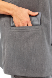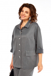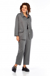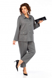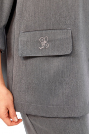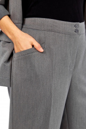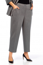 Костюм женский двухпредметный, состоит из жакета и брюк, выполнен из однотонной костюмной ткани. Жакет прямого силуэта со стояче-отложным воротником и центрально-бортовой застежкой на петли и пуговицы. По переду обработаны нагрудные вытачки и прорезные карманы с клапаном. Спинка на притачной кокетке. Рукава слегка спущенные. Брюки классической посадки, пояс притачной частично на эластичной тесьме. Застежка на петли и пуговицы. По передним деталям брюк обработаны карманы с листочкой. Костюм дополнен дизайнерской вышивкой. Обращаем Ваше внимание, что цвет на экране может отличаться от реального. Длина жакета по спинке — 69 см, длина плеча + рукав — 73 см. р.50 — ПОГ 59 см ПОБ 61 см, р.52 — ПОГ 61 см ПОБ 63 см, р.54 — ПОГ 63 см ПОБ 65 см, р.56 — ПОГ 65 см ПОБ 67 см. Длина брюк по боковому шву — 96 см. р.50 — ПОТ 36 см ПОБ 56 см, р.52 — ПОТ 38 см ПОБ 58 см, р.54 — ПОТ 40 см ПОБ 60 см, р.56 — ПОТ 42 см ПОБ 62 см.