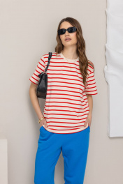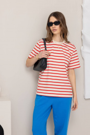 Стильный женский джемпер с коротким рукавом выполнен в полоску и представлен в разнообразии цветов, что позволяет подобрать идеальный вариант для любого образа. Изделие изготовлено из высококачественного материала, который обеспечивает легкость, комфорт и приятные ощущения при носке. Этот джемпер станет универсальной базовой частью вашего гардероба, идеально подходящей для повседневной носки в сезоны весна-лето. Длина изделия: - 62 см, длина рукава-20с см